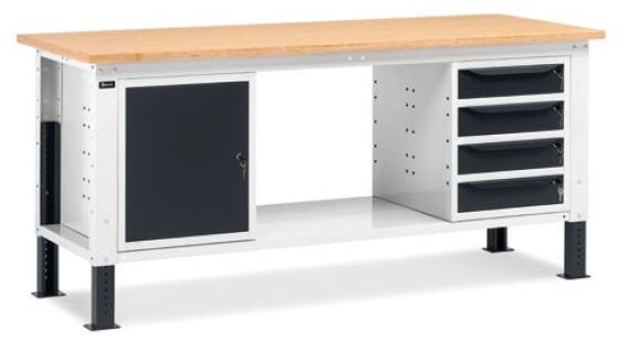 Workbench 200x75 cm, with 2 drawers and a shelf